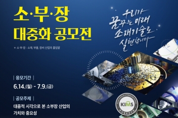 한국재료연구원(KIMS, 원장 이정환)이 ‘소부장 대중화 공모전’을 개최하고, 최우수상 1명(또는 1팀)에게 상장과 상금 100만원을, 우수상 2명(또는 2팀)에게 상장과 상금 50만원씩을, 장려상 5명(또는 5팀)에게 상장과 상금 20만원씩이 부여한다.