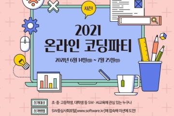 6월14일부터 7월25일까지 총 6주간 ‘2021 온라인 코딩파티 시즌1’이 개최돼 누구나 쉽고 재미있게 소프트웨어와 인공지능 체험을 할 수 있는 자리가 마련됐다.
