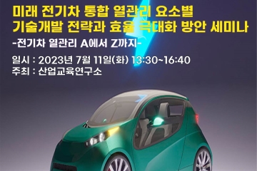 산업교육연구소가 최근 전기차의 경쟁력으로 자리잡고 있는 효율적인 차량 냉·난방 및 전력부품의 온도 관리를 위한 통합 열관리 시스템 기술을 주제로 세미나를 개최한다.