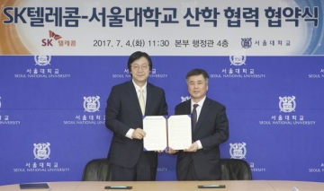 SK텔레콤은 서울대학교 본관에서 AI 분야 인재 양성과 생태계 조성을 위한 협약을 체결했다고 밝혔다. 먼저 SK텔레콤과 서울대는 올해 2학기(9월 개강)부터 전기·정보공학부 대학원 과정에 ‘누구(NUGU) & 에이브릴 위드 왓슨(Aibril with Watson..