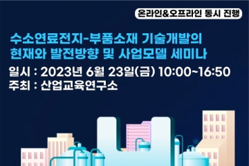 산업교육연구소가 산업통상부의 수소연료전지 육성정책부터 두산 퓨얼셀파워 등 기업의 사업추진 현황 등을 들을 수 있는 수소연료전지-부품소재 관련 세미나를 개최한다.