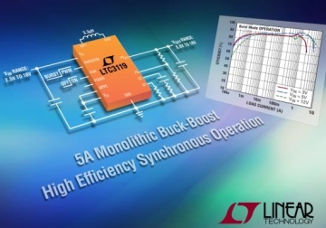 리니어 테크놀로지 코리아(대표 홍사곽)는 싱글 또는 멀티셀 배터리, 월 어댑터(wall adapter), 솔라패널 및 슈퍼 커패시터 등 다양한 입력 소스를 이용해 벅(buck) 모드에서는 최대 5A의 연속 출력 전류를 공급하는 동기식 전류 모드 모놀리식 벅-부스트 컨버..