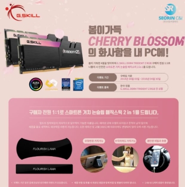 서린씨앤아이 지스킬의 RGB 메모리 트라이던트 Z RGB 시리즈 구매 시 1:1로 스마트폰 논슬립 매직 스틱 2in1 경품 증정 행사를 진행 한다. 이번 제품 경품 증정 행사는 최근 출시된 트라이던트 Z RGB 시리즈 모든 클럭 등이 해당이며 제품 구매 시 별도..