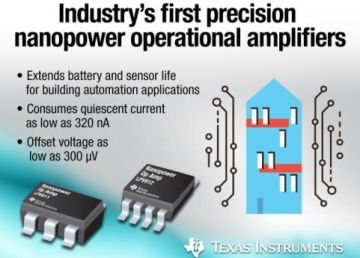 TI는 업계 최초의 정밀 나노전력 연산 증폭기 제품을 출시한다고 밝혔다. 새로운 초저전력 연산 증폭기 4종 중에서 LPV811과 LPV812는 320nA의 낮은 정지 전류를 소모한다. 또한, 경쟁사의 정밀 연산 증폭기보다 최고 60%까지 더 적은 전력을 소모하고..
