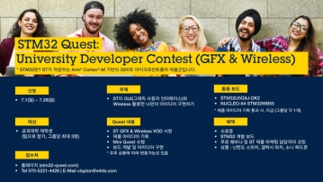 ST는 공과대학 재학생을 대상으로 ‘ST의 GUI와 Wireless를 활용한 나만의 아이디어 구현하기’를 주제로 ‘STM32 Quest: 2024 University Developer Contest (GFX & Wireless)’를 개최한다.