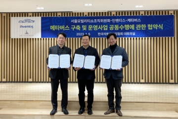 서울모빌리티쇼조직위원회(이하 조직위)는 5일 서초구 자동차회관에서 (주)인벤티스·(주)케타버스 컨소시엄과 서울모빌리티쇼 메타버스 구축 및 운영사업 공동수행에 관한 업무협약을 체결했다.