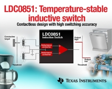 TI(대표이사 켄트 전)는 업계 최초의 차동 인덕티브 스위치 제품을 출시한다고 밝혔다. 신제품 LDC0851은 듀얼 코일 아키텍처를 사용하여 온도 변화와 부품 노화에 따라 자동으로 보정한다. 또한, PCB(printed circuit board)에 그려진 간단한 코일을..
