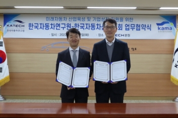 나승식 한자연 원장과 강남훈 KAMA 회장은 22일 한국자동차연구원 본원에서 R&D 성과물 확산 및 기업 성장 지원 활성화를 위한 상호 업무협약을 체결했다고 밝혔다.