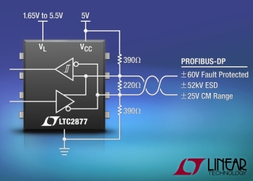 리니어 테크놀로지 코리아(대표 홍사곽)는 프로피버스(PROFIBUS)-DP (decentralized periphery) 마스터 및 슬레이브 디바이스에 알맞은 견고성이 우수하고 고전압에 잘 견디는 RS485 트랜시버 2종(제품명: LTC2876 및 LTC2877)을 출..