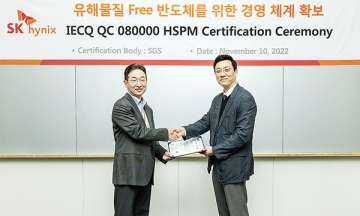 SK하이닉스 친환경 반도체 공급에 필요한 유해물질 관리 역량을 입증하는 스위스의 국제 표준 인증기관인 SGS(Societe Generale de Surveillance)로부터 ‘국제 유해물질 경영시스템 규격 ? IECQ QC 080000’ 인증을 획득했다.