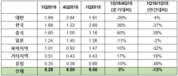 국제반도체장비재료협회(SEMI)는 2016년 1분기 전세계 반도체 제조장비 출하액을 83억달러라고 발표했다. 이 수치는 지난 2015년 4분기보다 3% 증가한 것이며, 2015년 1분기 보다는 13% 하락했다. SEMI는 일본의 반도체장비협회(SEAJ)와 공동으..