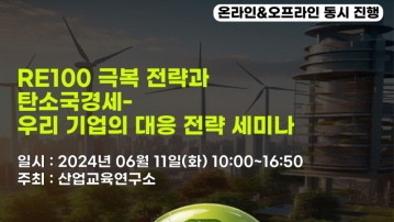 산업교육연구소(이하 산교연)는 오는 6월11일에 ‘(수출)기업 RE100 극복 전략과 탄소국경세- 우리 기업의 대응 전략 세미나’를 온·오프라인 동시 개최한다고 전했다.