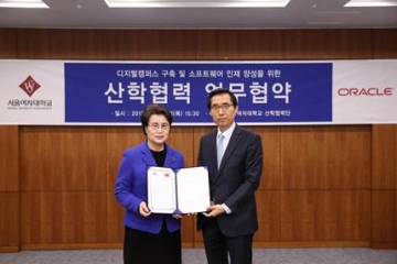 한국오라클과 서울여자대학교가 지난 4월 13일 서울여대 바롬인성교육관에서 첨단 디지털 캠퍼스 구축 및 소프트웨어 인재 양성을 위한 양해각서(MOU)를 체결했다. 오라클은 자사의 기술과 서비스와 함께 서울여자대학교가 첨단 디지털 캠퍼스가 될 수 있도록 상호간에 적..