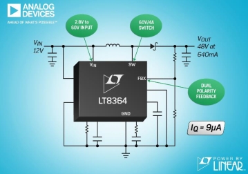 아나로그디바이스는 4A 60V 스위치를 내장한 전류 모드 2MHz 스텝업 DC/DC 컨버터 신제품 Power by Linear LT8364를 출시했다고 밝혔다. LT8364는 2.8V ~ 60V의 입력 전압 범위에서 동작하며, 싱글셀 리튬이온 배터리부터 멀티셀 배..