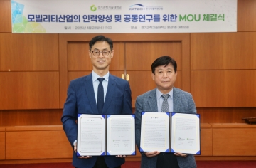 한국자동차연구원(원장 진종욱)과 경기과학기술대학교(총장 허남용)가 ‘AI융합·친환경 모빌리티 산업 인력양성 및 국내외 공동연구를 위한 업무협약’을 체결했다.