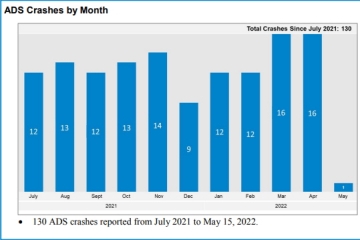 미국 도로교통안전국(이하 NHTSA)는 6월 보고서를 통해 2021년 7월 13일부터 2022년 5월 15일까지 130건의 ADS 장착 차량 충돌 사고가 발생했다고 전했다.
