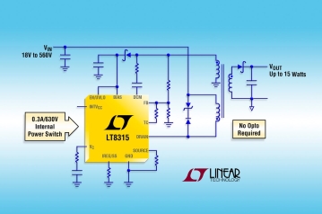 리니어 테크놀로지는 절연형 DC/DC 컨버터 설계를 간소화하는 고전압 모놀리식 플라이백 레귤레이터 신제품을 출시한다. 신제품은 전원 변압기 상의 1차측 보조 권선에 반사된 절연 출력 전압을 샘플링하기 때문에, 컨버터 설계를 간소화할 수 있다. 신제품 LT8315는 1..