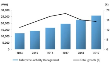 IT 시장분석 및 컨설팅 기관인 한국IDC(대표 홍유숙)의 최근 보고서에 의하면, BYOD 트랜드 강세와 기업의 모빌리티 활용이 늘면서 2015년 국내 EMM(엔터프라이즈 모빌리티 매니지먼트) 소프트웨어 시장이 전년대비 14.1% 성장한 143억원을 기록할 것으로 잠정..
