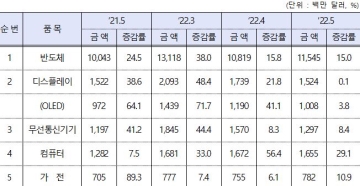 반도체, 무선통신기기 등을 비롯한 ICT 품목이 역대 5월 중 최고 기록을 경신하며 5월 수출 증가를 견인했다.