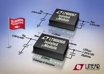 리니어 테크놀로지는 2kVAC 갈바닉 절연 기능을 제공하는 DC/DC μModule® 레귤레이터(제품명: LTM8067/ LTM8068)를 출시했다고 밝혔다. LTM8067 및 LTM8068은 9mm x 11.25mm x 4.92mm BGA 패키지에서 절연형 트랜스포머..