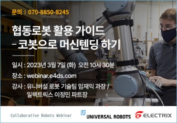 유니버설 로봇이 오는 3월7일 e4ds 웨비나를 통해 ‘협동로봇 활용 가이드 - 코봇으로 머신텐딩하기’를 주제로 웨비나를 개최한다.