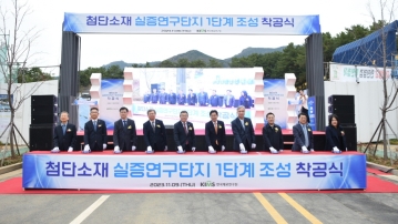 한국재료연구원이 창원시 진해구 여좌동 제2재료연구원 부지에서 소재 실증연구 인프라 구축과 산학연 협력 및 이를 기반으로 지역산업 발전을 목표로 하는 ‘첨단소재 실증연구단지 1단계 조성 착공식’을 개최했다.