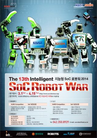 2014년 4월 2일, 서울 – 알테라 코리아(지사장 김동훈, www.altera.com)는 SoC(System on a Chip)를 활용한 지능형 로봇 경진대회인 ‘지능형 SoC 로봇워’를 2014년에도 공식 후원한다고 발표했다. KAIST 시스템설계응용연구센터 (SDIA)가 주관하는 ‘지능형SoC 로봇워 (www.socrobotwar.org)’는 SoC를 활용한 지능형 로봇 구현을 통해 SoC 분야의 고급 기술인력을 양성하고, SoC 및 지능형 로봇 분야의 활성화로 국가 경쟁력 향상을 위한 것이 그 목적이다. 전국의 대학(원)생을 대상으로 하는 이 대회는 지난 2002년을 시작으로 2014년 제 13회 대회를 맞이하고 있다.
