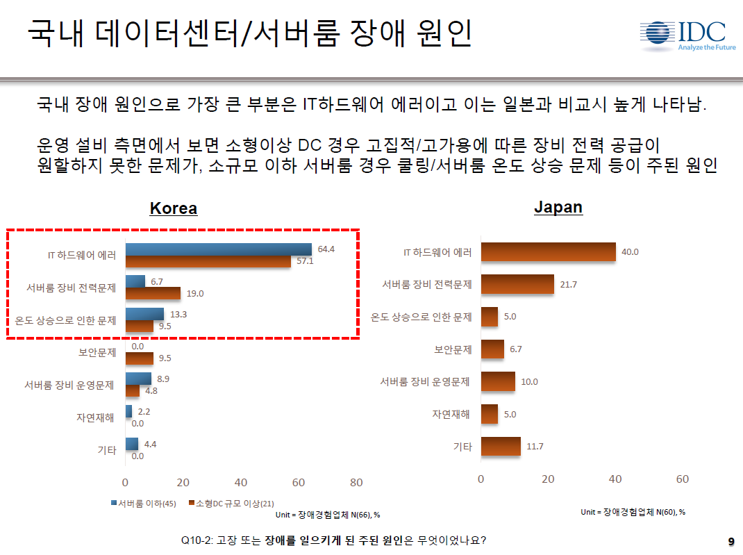 국내 데이터센터 장애발생 비율 일본보다 5배 높은 수치