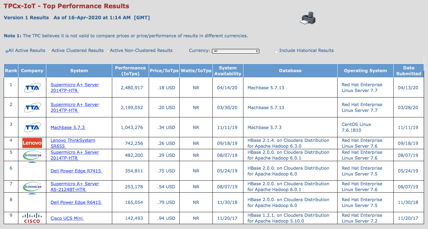 ▲ TPCx-IoT 테스트 결과 [출처=TPC]