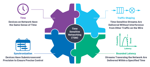 ▲ TSN은 시간, 트래픽 형성, 동기화, 제한된 지연시간 등