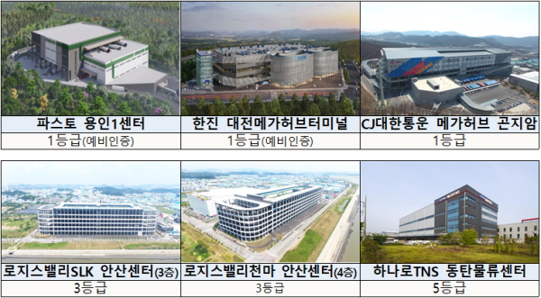CJ대한통운, 한진의 메가 허브터미널은 나란히 1등급을 받았다.
