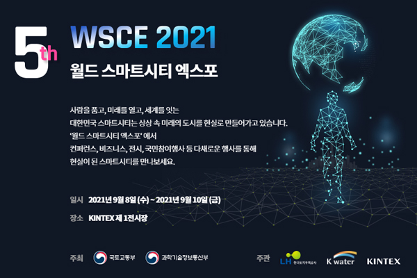 국토교통부와 과학기술정보통신부가 주최하고 한국토지주택공사, 한국수자원공사, 킨텍스가 주관하는 아태지역 최대 스마트시티 국제행사, ‘제5회 월드 스마트시티 엑스포’, 이하 ‘WSCE 2021’이 8일부터 10일까지 고양 킨텍스에서 개최된다.