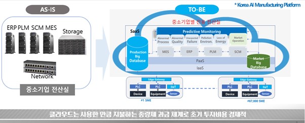 정부에서는 중소·중견기업을 위해 인공지능 중소 벤처 제조 플랫폼(Korea AI Manufacturing Platform: KAMP), 즉 클라우드 기반의 플랫폼을 구축해 제조 로우 데이터를 클라우드에서 운영할 수 있도록 지원하고 있다.