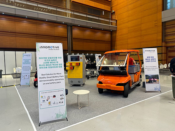 이노모티브는 마이크로 모빌리티를 위한 솔루션을 선보였다. 부스에서는 모든 마이크로 모빌리티에 연동이 가능한 배터리 팩과 배터리 교환식 다목적 전기차를 시연했다.