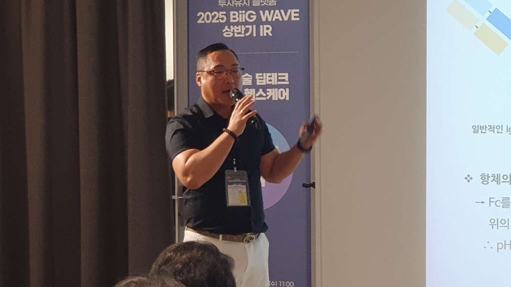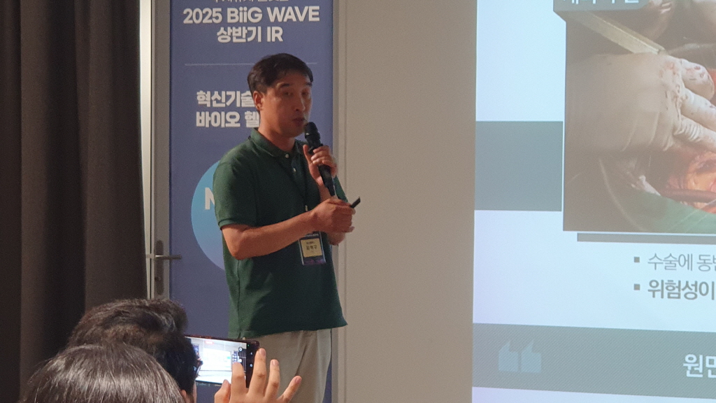 ▲엠엑스바이오 이재현 대표이사가 발표하고 있다.