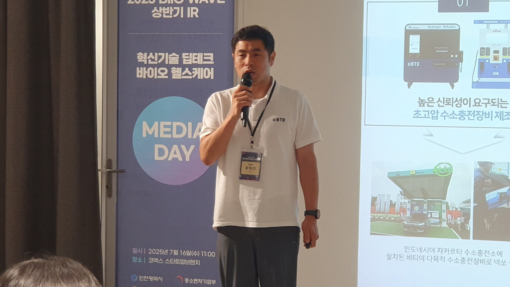 인천광역시와 인천창조경제혁신센터(대표이사 이한섭)가 함께하는 투자생태계의 대표적 투자 유치 플랫폼인 ‘빅웨이브(BiiG Wave)’가 16일 서울 코엑스에서 올해 지원 대상으로 선정된 스타트업들의 투자 유치 사업계획 발표회(IR)를 개최했다. 이날 발표에는 메이아이, 비티이, 스칼라데이터, 스피드플로어, 지큐티코리아, 딥카디오, 바스플렉스, 빌릭스, 앱파인더테라퓨티스, 엠엑스바이오가 참여했다.