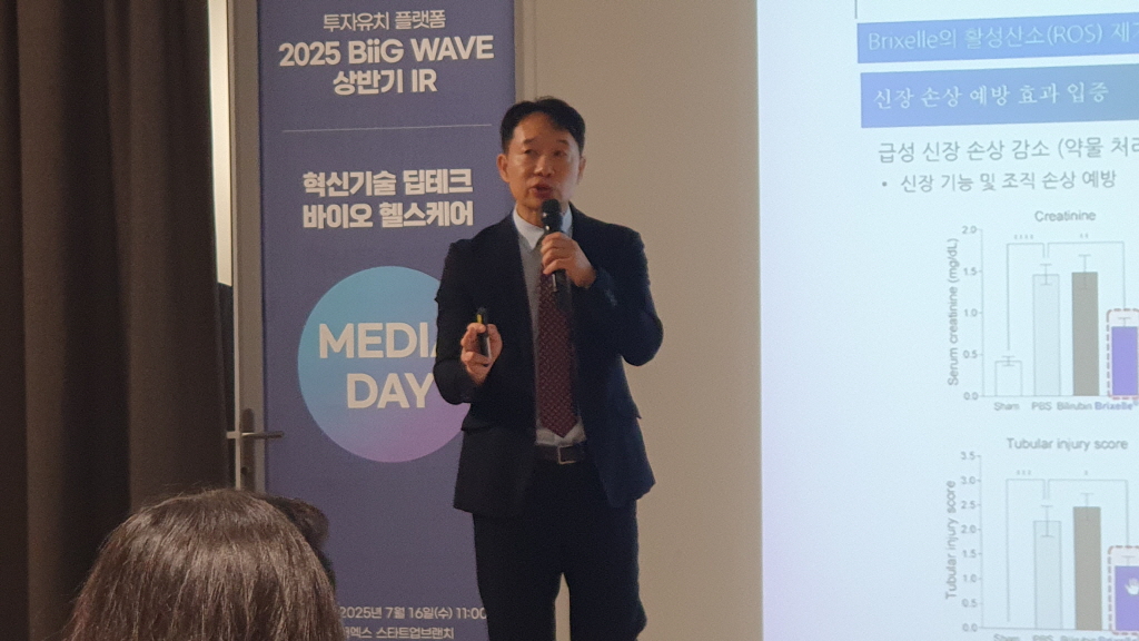 빌릭스(대표이사 김명립)는 인체 내 강력한 항산화 물질이지만 약으로 사용하기 어려웠던 ‘빌리루빈’을 자체 개발한 합성 및 페길화(PEGylation) 기술을 통해 안정적인 나노입자 약물 ‘브릭셀(Brixelleⓡ)’로 전환시켰다. 브릭셀은 물에 잘 녹고 체내에서 80시간 이상 머무르며 염증 부위를 표적해 찾아가는 특성이 있다.