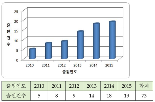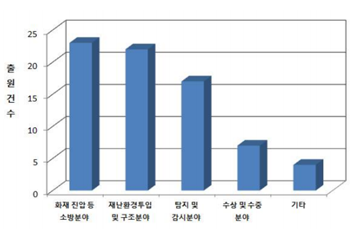 According to KIPO, the annual average number of domestic patent applications related to disaster response robots used to be only 2 to 3 (based on application date). However, it increased to 22 during the period from 2010 to 2012 and to 51 during the period from 2013 to 2015, showing continuous increase ever since 2010.