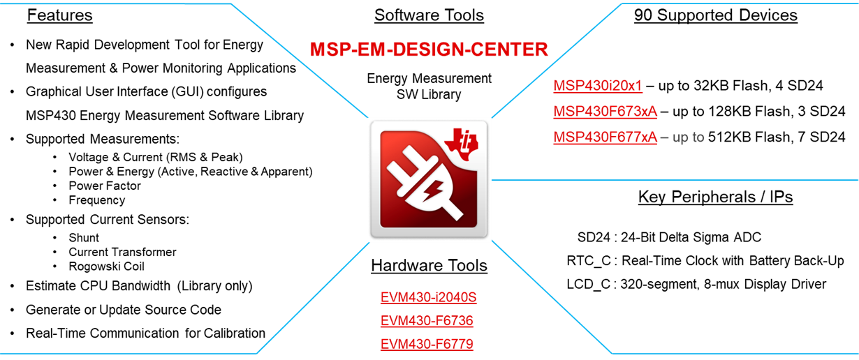 TI의 MSP430 마이크로컨트롤러 중 하나를 사용하면 전력과 전력량을 쉽게 계산할 수 있다. MSP430F67xxA 및 MSP430i20xx MCU는 24비트 시그마-델타 아날로그-디지털 컨버터 및 AC 파형을 캡처하고 처리하여 전력, 전력량과 다른 파라미터를 계산하는 기타 통합 아날로그 및 디지털 모듈을 포함한다.