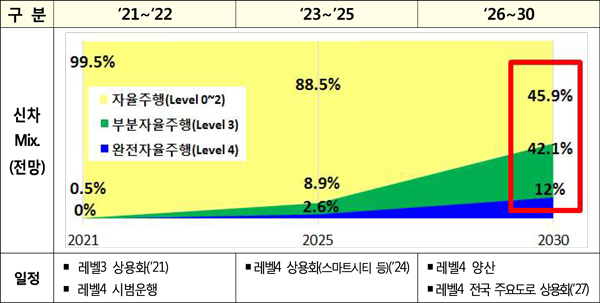 ▲레벨 3, 레벨 4 자율주행 로드맵 (이미지=정부)