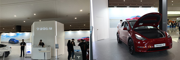 로비층에는 테슬라·폴스타·마이브·빈센 등이 테슬라 모델Y, 폴스타2, 마이브M1 등 각 시승 행사를 진행했다.