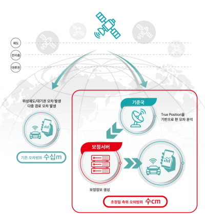 초정밀 측위 서비스는 기존 GPS 등을 통해 제공되던 위치 서비스에서 발생하는 수~수십 미터(m)의 오차를 센티미터(cm)단위까지 줄여 정확한 정보를 제공하는 것이다.