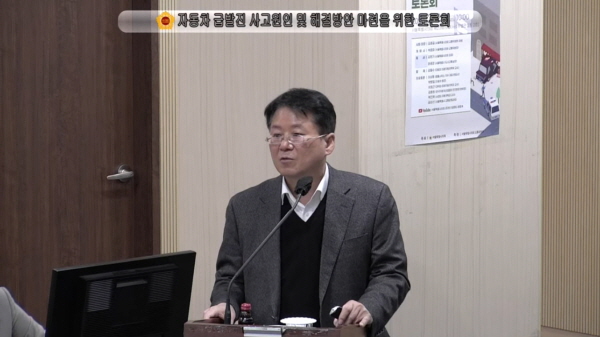 김필수 대림대학교 미래자동차학부 교수는 토론회 발제자로 나서 자동차 급발진 사고 현황과 해결방안에 대해 발표했다.