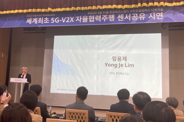 에티포스가 세계최초 5G-V2X 사이드링크 센서데이터 공유 시연을 성공적으로 마쳤다.