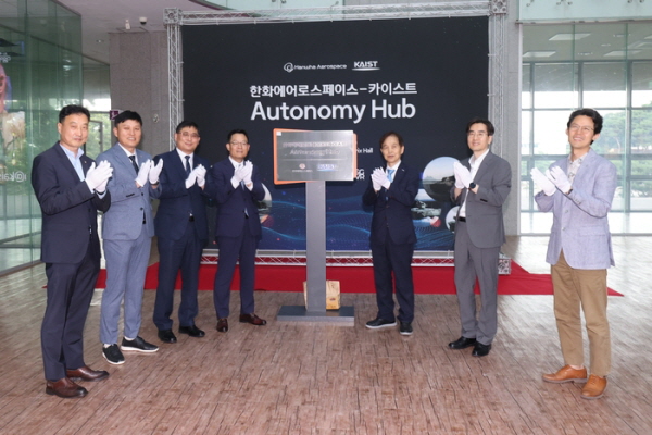 한화에어로스페이스는 26일 대전 KAIST에서 손재일 한화에어로스페이스 대표와 이광형 KAIST 총장 등이 참석한 가운데 자율주행 기술 연구센터인 ‘오토노미 허브(Autonomy Hub)’ 현판식을 열었다.