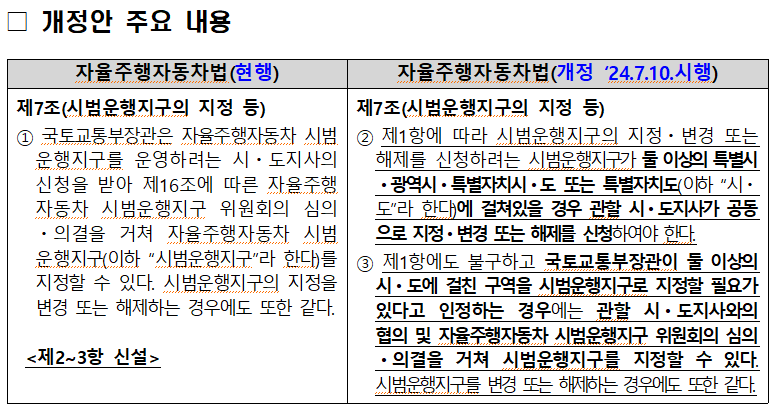 ▲시범운행지구 지정 개정안 주요 내용(출처: 국토교통부)