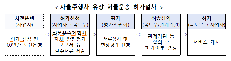 ▲자율주행차 유상 화물운송 허가절차(출처: 국토교통부)