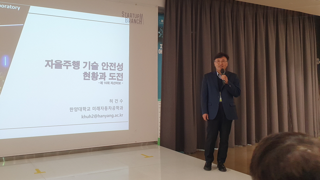 한국자동차연구원이 21일 개최한 제16회 자산어보(자동차 산업을 어우르고 보듬다)에서 주제 발표를 담당한 허건수 한양대학교 교수는 자율주행 안전 향상을 위해서는 고급 레벨의 기술이 상용화 레벨에 적용돼 수익성을 먼저 확보하는 것이 중요하다고 밝혔다. 이날 행사에서는 △한양대학교 허건수 교수의 자율주행 기술의 안전성 현황과 도전 △한자연 이혁기 지능형교통제어기술부문장의 자율주행 안전성 향상을 위한 기술적 이슈 △자동차안전연구원 윤용원 처장의 자율주행 정책 및 안전제도 동향에 대한 발표가 진행됐다.