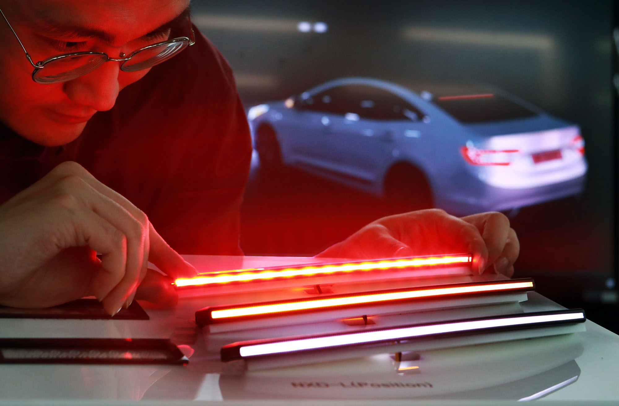 LG이노텍 ‘넥슬라이드-L’은 자동차 디자인을 차별화하고 완성도를 높이는 데 좋다. 차량 콘셉트에 따라 조명을 직선, 곡선, 물결 등 여러 모양으로 슬림 하고 매끄럽게 만들 수 있어서다. 조명을 1m 이상 길게 만들어도 밝기 차이에 따른 얼룩이나 끊김이 없을 만큼 고품질이다.