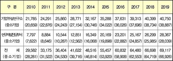 ▲기업부설연구소 등 인정 현황 (표=과기정통부)